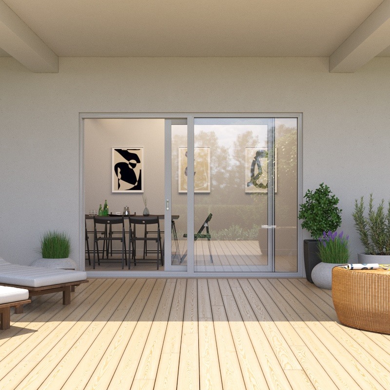 Materiale:Skyvedører i pulverlakkert aluminium med brutt kuldebro.