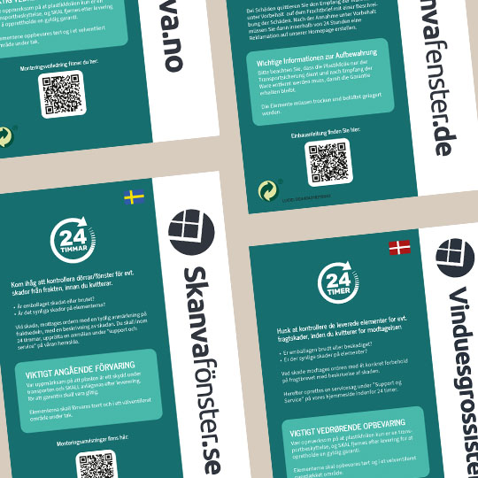 Hos Skanva tenker vi helhetlig - fra emballasje til produksjon. Vi bruker så få materialer som mulig når vi sender din ordre, og sørger samtidig for at emballasjen beskytter vinduene og dørene dine på en ansvarlig måte.