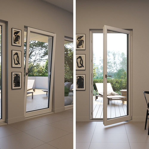 OBS! 2-veis funksjon med mulighet til å vippe inn i topp til lufting er kun mulig ved innoverslående dør