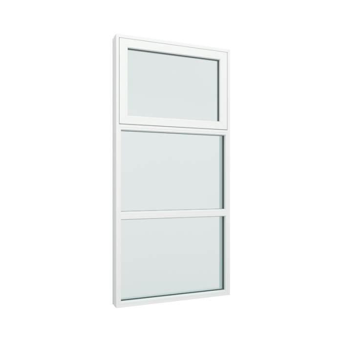 med 1x3 glassfelt og toppstyrt ramme i midten i topp (PVC-U1-13-TT)
