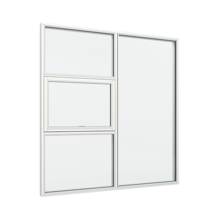 med 1x3 glassfelt med toppstyrt ramme i midten, samt 1 fag med 1 glassfelt (TR-U2-13-TM-11)