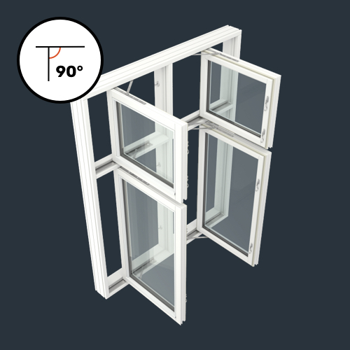 Om du ikke kan vaske vindusglassets innside, fra utsiden, for eksempel i 2. etasje, gavlseksjoner med mer, anbefaler vi at du kjøper vinduet med sidestyrt beslag. Med et sidestyrt vindu kan du rotere vinduet ditt 90 grader slik du enkelt kan pusse glassets utside, fra innsiden av.
