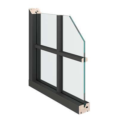Innvendige vinduerTil montering i innvendige vegger. Utført med rett bunnfals og uten dryppnese. New Yorker elementet er til montering i vegg men egnes også til å stå med fri gavl, hvis man dekker gavlen med en plate eller stolpe.