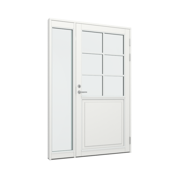Om du ønsker et mer enkelt utseende på din nye dør, kan du velge den med en enkelt bunnramme eller du kan velge et mere klassisk utseende med dobbel bunnramme