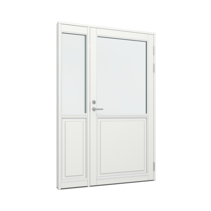 Om du ønsker et mer enkelt utseende på din nye dør, kan du velge den med en enkelt bunnramme eller du kan velge et mere klassisk utseende med dobbel bunnramme