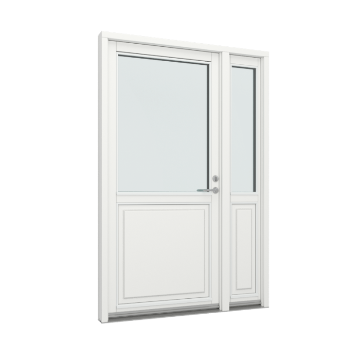 Om du ønsker et mer enkelt utseende på din nye dør, kan du velge den med en enkelt bunnramme eller du kan velge et mere klassisk utseende med dobbel bunnramme