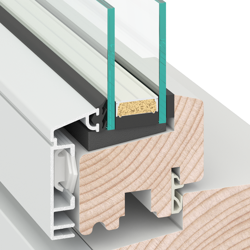 Våre vinduer og dører kan bestilles i ulike materialer. Nedenfor kan du se hvilket materiale denne modellen tilbys i. Elementer i tre og tre/aluminium er kvistfrie, fingerskjøtede med 90% kjerneved.