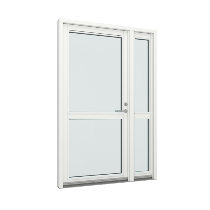 Om du ønsker et mer enkelt utseende på din nye dør, kan du velge den med en enkelt bunnramme eller du kan velge et mere klassisk utseende med dobbel bunnramme