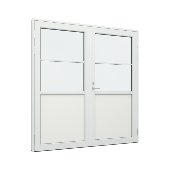 Vær oppmerksom ved innad slående dobbeltdører Når du skal velge åpningsretning på dobbeltdøren din, er det veldig viktig å kontrollere om døren kan risikere å bli utsatt for slagregn og forhold med blest uten le. Konstruksjonsmessig kan innad slående dobbeltdører nemlig ikke sikres 100 % mot vanninntak ved værforhold som eksempelvis slagregn. For å sikre en optimal lukketetthet skal 3-punktslåsen være aktivert og vi anbefaler alltid utadslående dører hvis døren ikke er i le. Det gis derfor ikke garanti mot vanninntak ved forhold som nevnt over. Det er normalt at Bransjen tar forbehold mot dette, men vi har valgt å gjøre dette forbehold mer synlig sånn at de som kan velge utadslående dører, også velger utadslående dører innen de kjøper døren.