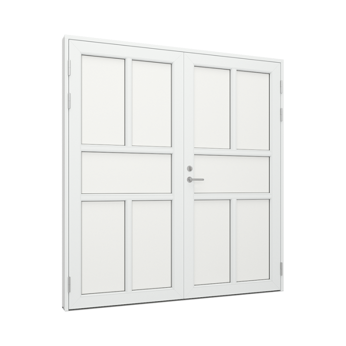 Vær oppmerksom ved innad slående dobbeltdører Når du skal velge åpningsretning på dobbeltdøren din, er det veldig viktig å kontrollere om døren kan risikere å bli utsatt for slagregn og forhold med blest uten le. Konstruksjonsmessig kan innad slående dobbeltdører nemlig ikke sikres 100 % mot vanninntak ved værforhold som eksempelvis slagregn. For å sikre en optimal lukketetthet skal 3-punktslåsen være aktivert og vi anbefaler alltid utadslående dører hvis døren ikke er i le. Det gis derfor ikke garanti mot vanninntak ved forhold som nevnt over. Det er normalt at Bransjen tar forbehold mot dette, men vi har valgt å gjøre dette forbehold mer synlig sånn at de som kan velge utadslående dører, også velger utadslående dører innen de kjøper døren.