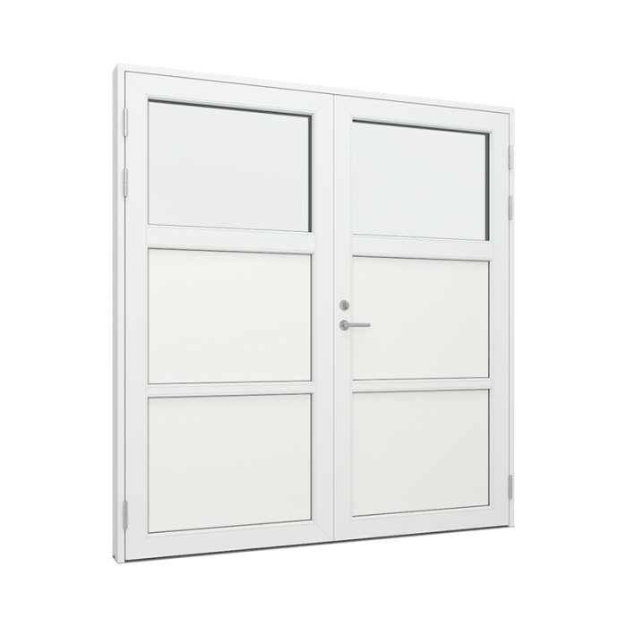 Vær oppmerksom ved innad slående dobbeltdører Når du skal velge åpningsretning på dobbeltdøren din, er det veldig viktig å kontrollere om døren kan risikere å bli utsatt for slagregn og forhold med blest uten le. Konstruksjonsmessig kan innad slående dobbeltdører nemlig ikke sikres 100 % mot vanninntak ved værforhold som eksempelvis slagregn. For å sikre en optimal lukketetthet skal 3-punktslåsen være aktivert og vi anbefaler alltid utadslående dører hvis døren ikke er i le. Det gis derfor ikke garanti mot vanninntak ved forhold som nevnt over. Det er normalt at Bransjen tar forbehold mot dette, men vi har valgt å gjøre dette forbehold mer synlig sånn at de som kan velge utadslående dører, også velger utadslående dører innen de kjøper døren.