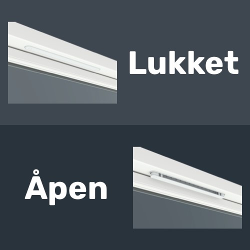 Ventil gjør det mulig for frisk luft å strømme inn i rommet selv om vinduet er stengt, og skaper dermed et bedre inneklima i boligen. Til våre elementer med en innvendig hvit farge monteres en hvit ventil. Til andre fargede elementer er ventilen sølvgrå.