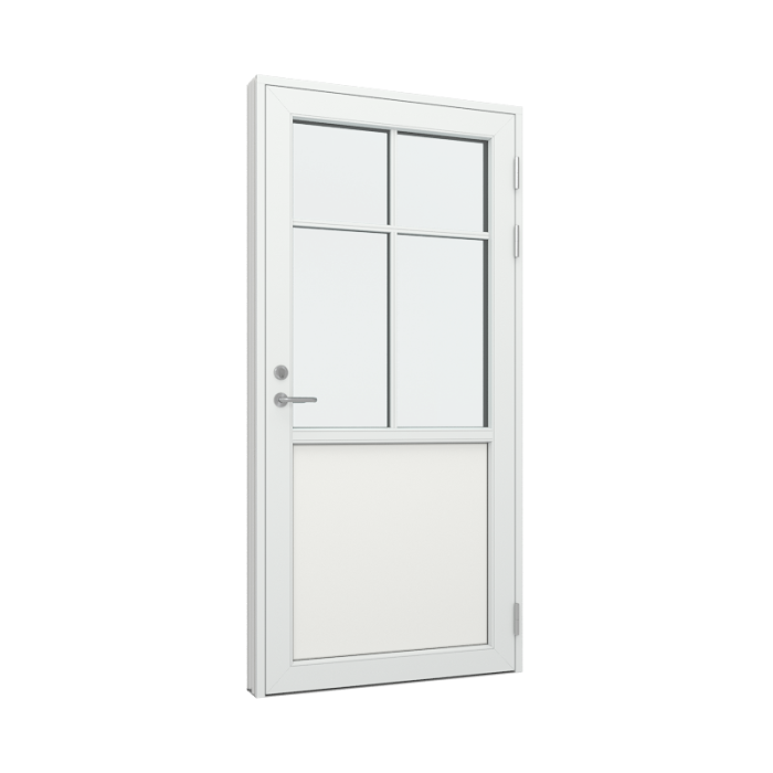 Våre fyllinger på tre/alu dører tilbys kun med moderne profil utvendig, men du kan velge om den innvendig skal være klassisk eller moderne. Ønsker du å justere brystningshøyden kan du selv justere høyden i valget for 'Karmmål'.