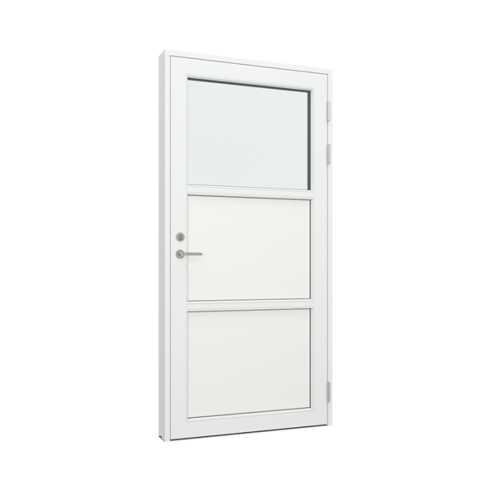 Våre fyllinger på tre/alu dører tilbys kun med moderne profil utvendig, men du kan velge om den innvendig skal være klassisk eller moderne. Ønsker du å justere brystningshøyden kan du selv justere høyden i valget for 'Karmmål'.