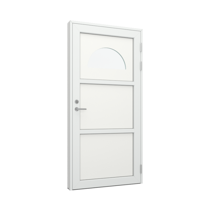 Våre fyllinger på tre/alu dører tilbys kun med moderne profil utvendig, men du kan velge om den innvendig skal være klassisk eller moderne. Ønsker du å justere brystningshøyden kan du selv justere høyden i valget for 'Karmmål'.