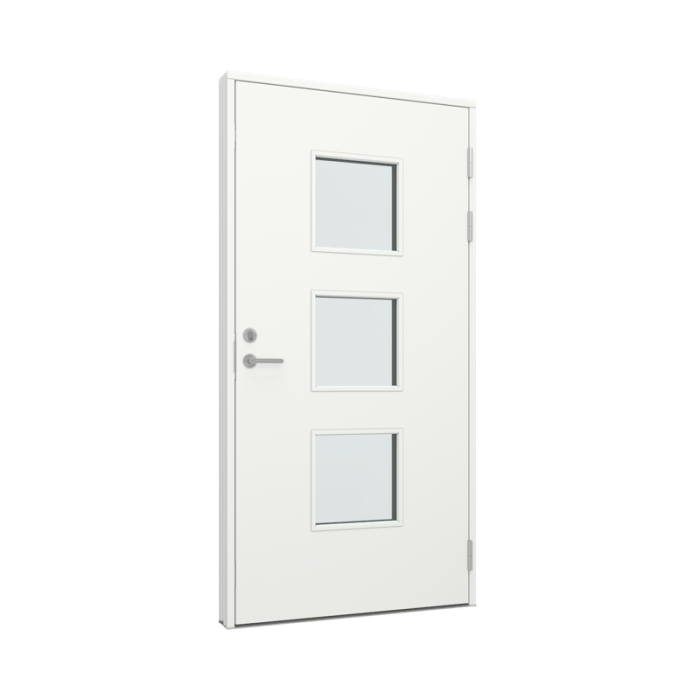 med 3 kvadratiske glassfelt (Platedør, Tredør med tre/alu karm) (TRAL-PL1-21)