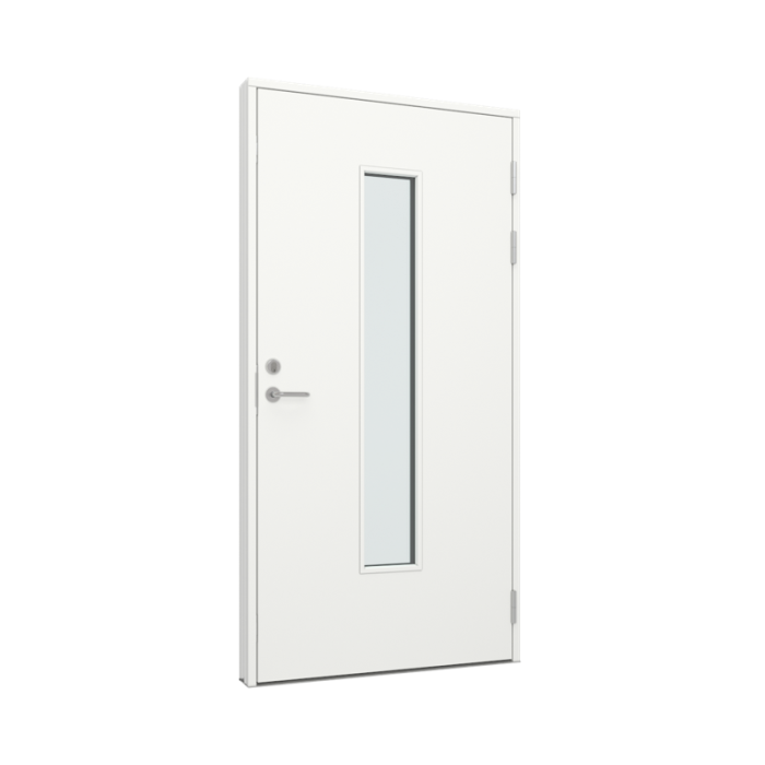 med vertikal glassfelt i midten (Platedør, Tredør med tre/alu karm) (TRAL-PL1-12)