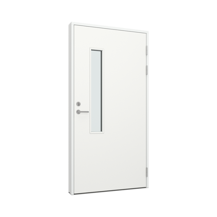 med vertikal glassfelt i siden (Platedør, Tredør med tre/alu karm) (TRAL-PL1-11)